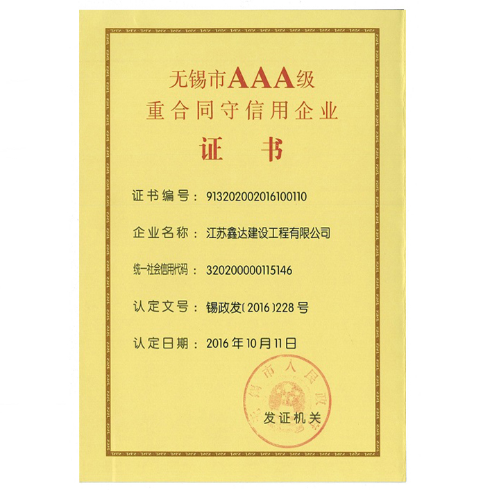 • 无锡市AAA级重合同守信用企业 |
