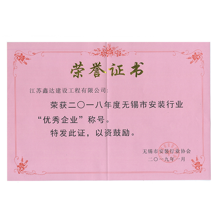 2018年度市安装行业优秀企业