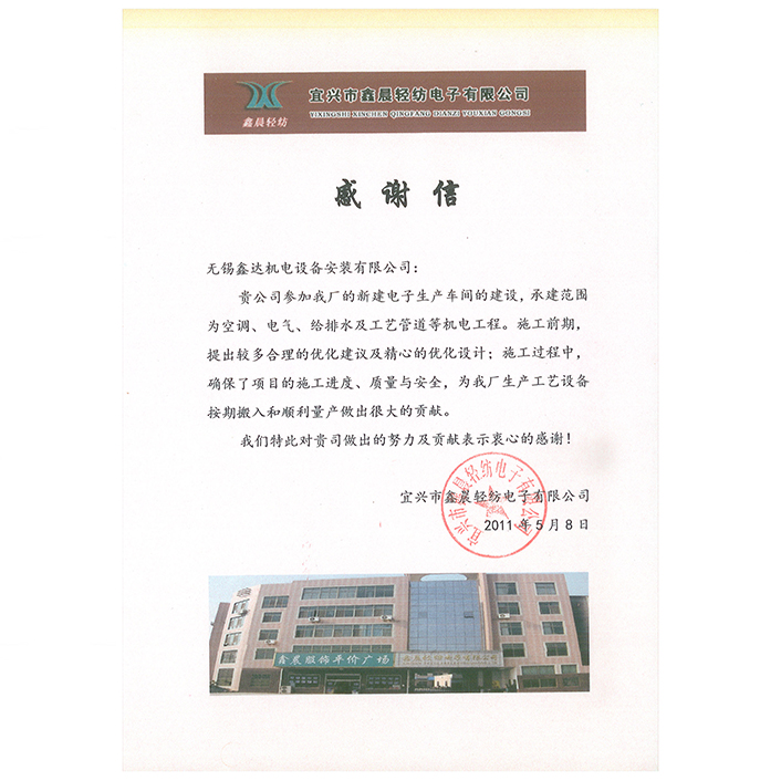 2011年客户感谢信(鑫晨电子)