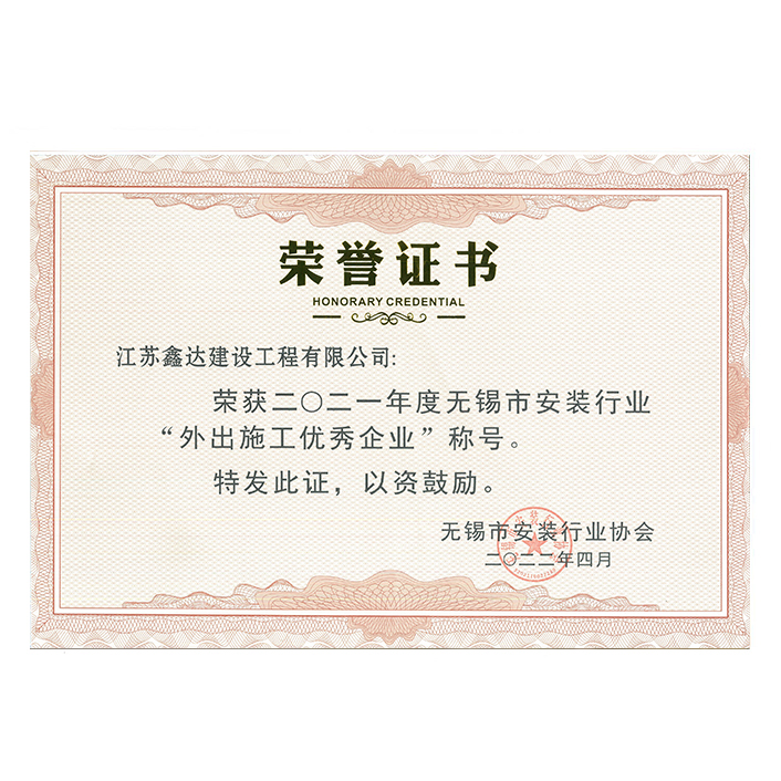 2021年度市安装行业外出施工优秀企业