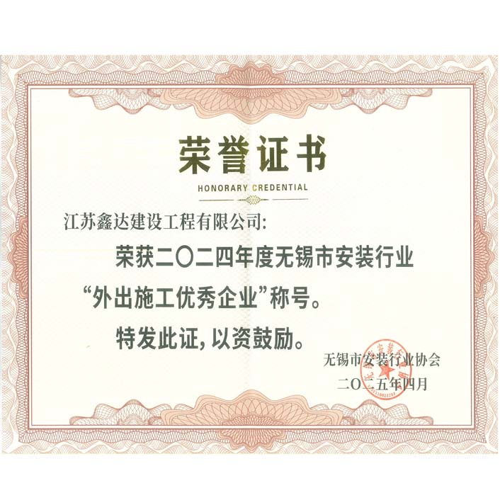 2024年度无锡市安装行业“外出施工优秀企业”
