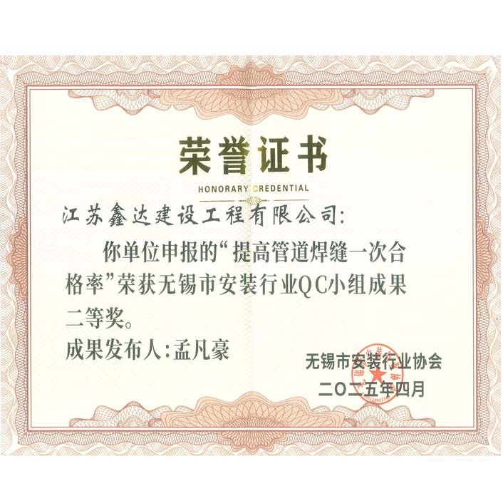 无锡市安装行业QC小组成果二等奖(孟凡豪)